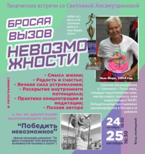 Творческие встречи и просмотр фильма «Победить невозможное» со Светланой Хисамутдиновой, победительницей многосуточных ультрамарафонов и поэтессой.